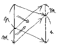 図を描いて考えれば、これ(交替律)も自明だろう。下のような、4つのブロッ クを組み合わせたカタマリを描いて、しばらく眺めればよい(*注5)。