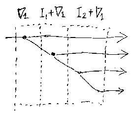 D0=!1、D1=I1、D2=∇1と定義する。さらに、D3=D2;(I1 + ∇1)、 D4=D3:(I2 + ∇1)、D5=D4:(I3 + ∇1) のように定義していく。一般 形は、D(n+1)=Dn;(In-1 + ∇1):1→n+1 である。Dnは、1本の入力を、 n本の出力にコピーして出力する。
