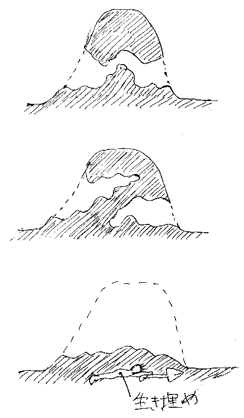 もうひとつ例え話をします。また、穴を掘る話です。が、今度は縦穴ではな くて横穴です。